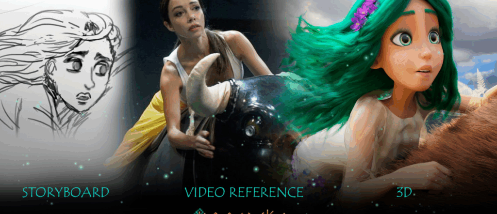 Також у новинному релізі наголошено: саме з цих референсів аніматори реконструювали емоції та пластику Мавки у 3D-моделі, що видно на ілюстрації «STORYBOARD — VIDEO REFERENCE — 3D».
